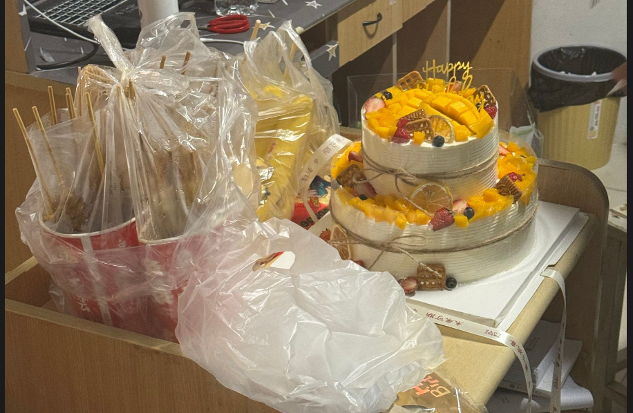 回到学校后没过多久就到了宿舍集体生日(除我以外的三个室友生日时间大致相近就放在一起过了),那天叫上了专业内所有叫得上号的人物,活动一直持续到了凌晨,第二天就收到了导员的通报表扬hhhh,算是入学以来第一次契合高中的幻想(就是事后打扫太受罪了)。(附上一张活动开始前的照片~)