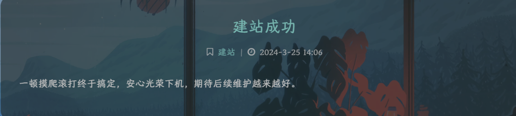 在三月完成了2024的第一个拿得出手的任务:搭建博客。虽然整个过程比较顺利,搭建难度也不值一提,但作为一个非科班的学生第一次将课外学到的技术应用于实践的成就感是前所未有的,搭建博客之初便幻想了许多日后维护的美好场景。