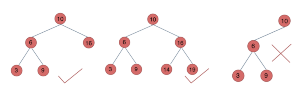 • 若它的左子树不空,则左子树上所有结点的值均小于它的根结点的值;